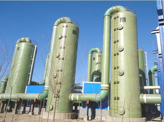 玻璃鋼吸收塔不受冬、夏天氣候變化限制、美觀大方、經(jīng)久耐用、耐腐蝕。玻璃鋼吸收塔分為、上塔體、筒體、循環(huán)液糟組成,塔內(nèi)有兩層填料,一層斜波紋板、二層階梯環(huán),具有較大的表面積氣液接觸,充分傳質(zhì)效率高。